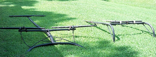 This Wagon includes a tongue for pulling with vehicle (2" Ball Hitch) and a Tongue and Staves for hitching One or Two horses! (You can double your horsepower!)