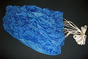 blue parachute is vividly colored and sure to set heads to turning. It is