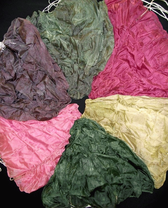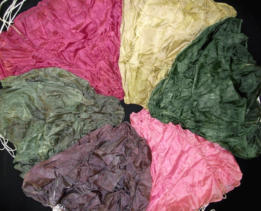 best techniques and colors for dyeing parachutes. Experimentation is the